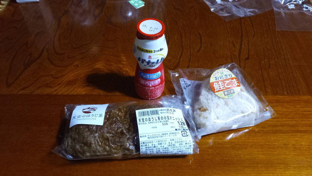 朝食と言っても、パンとおにぎり。