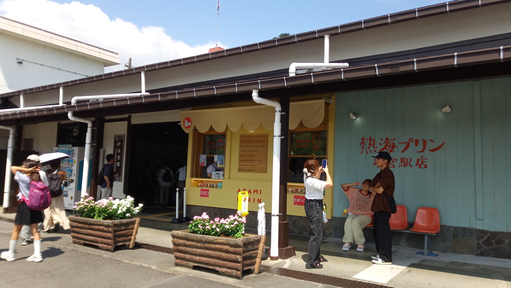 もちろん、来宮駅の看板はあるのだけど、その駅舎の中に、熱海プリンの店舗が出来ている。