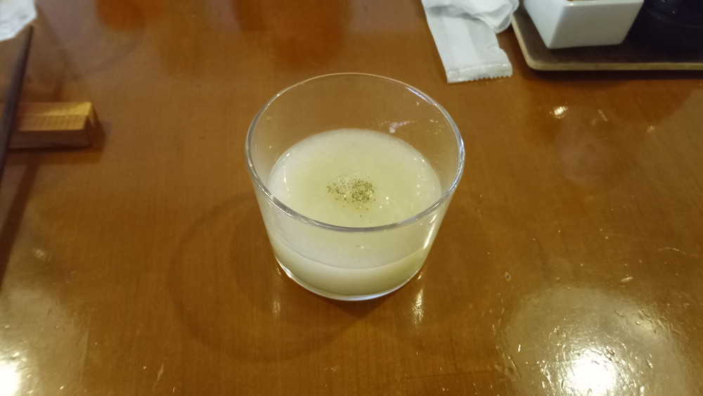 次に出てきたのは、カブと玉ねぎの冷製スープ。