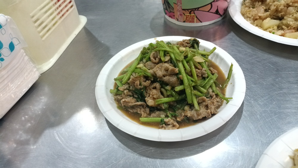 炒茶羊肉は、羊肉と空心菜を沙茶醤という調味料で炒めたものらしい。