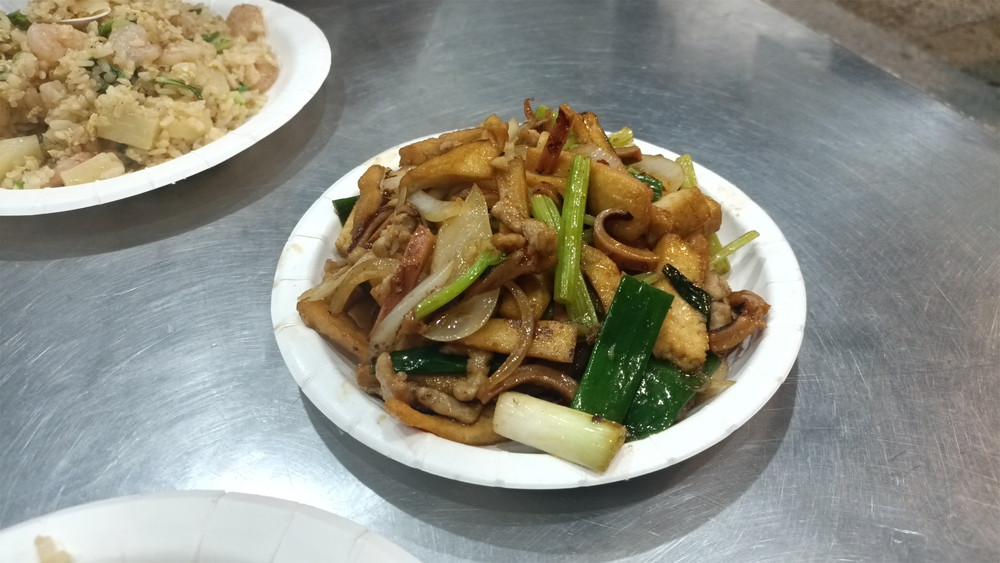 客家小炒は、野菜がメインだと思っていたが、スルメ、豆干、ネギ・・・そうだった、昨年北埔で食べてた。