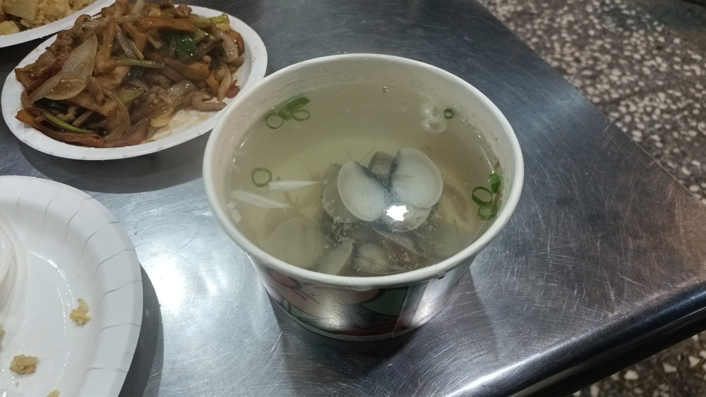 そしてダメ押しで、蛤子湯。ハマグリのスープだが、量が多い・・・