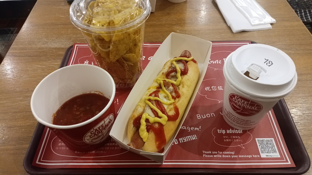 スパイシーチーズドック・コーヒー・ナチョス