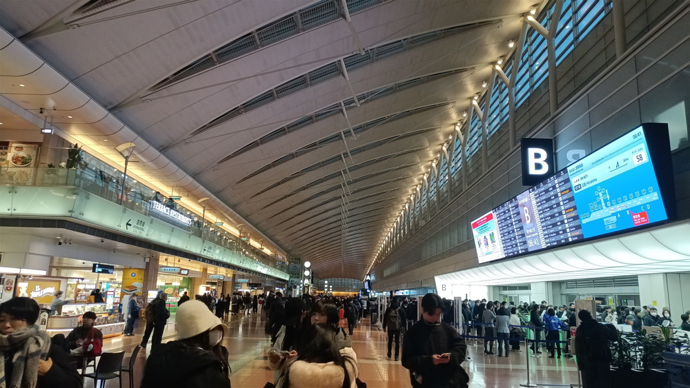 途中で乗り換えて羽田空港に着く頃には、めちゃくちゃ混雑していた。