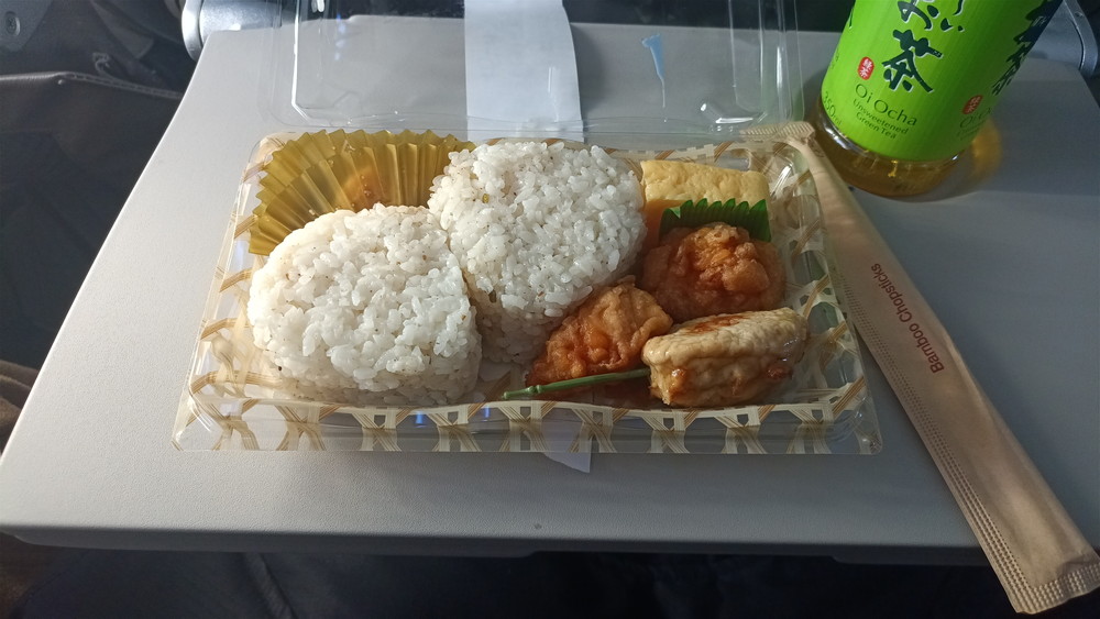 安定飛行になったので、さっき買った、おにぎりセットを食べよう。
