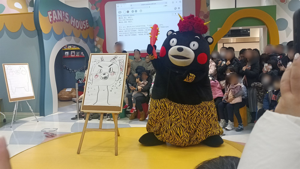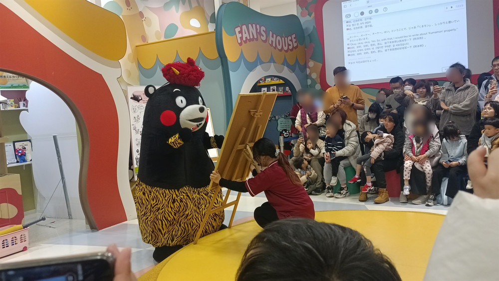 くまモンがその場で自分を描いたり、ダンスをしたりと、30分のステージだけど、なかなか面白かった。