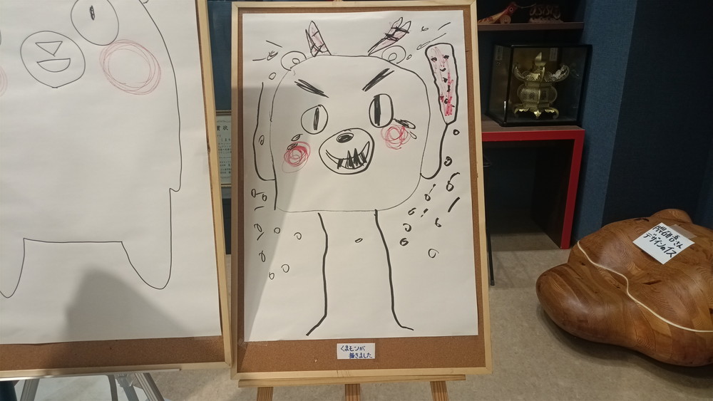 くまモンが描いた自画像。右側はスタッフのおねーさんが描いた。